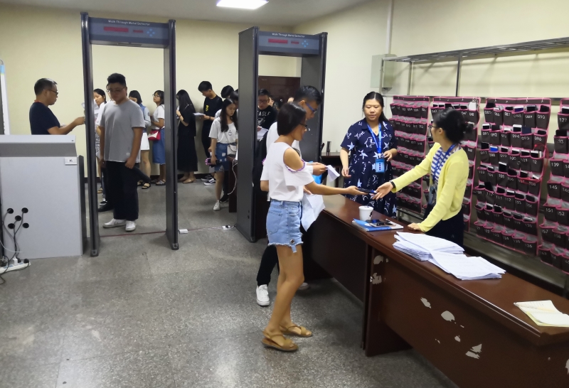 考试期间,教务处严格按照统考要求流程,考场入口、安检室、考场楼道均安排保安专人值守;安检室内有两门教师专职保管考生手机;所有考场配备远程高清网络摄像,并且在本次考试中首次启用了人脸识别技术,有效了杜绝了替考等违纪、作弊行为,整个考试工作做到了“安全、公平、严肃、有序”。